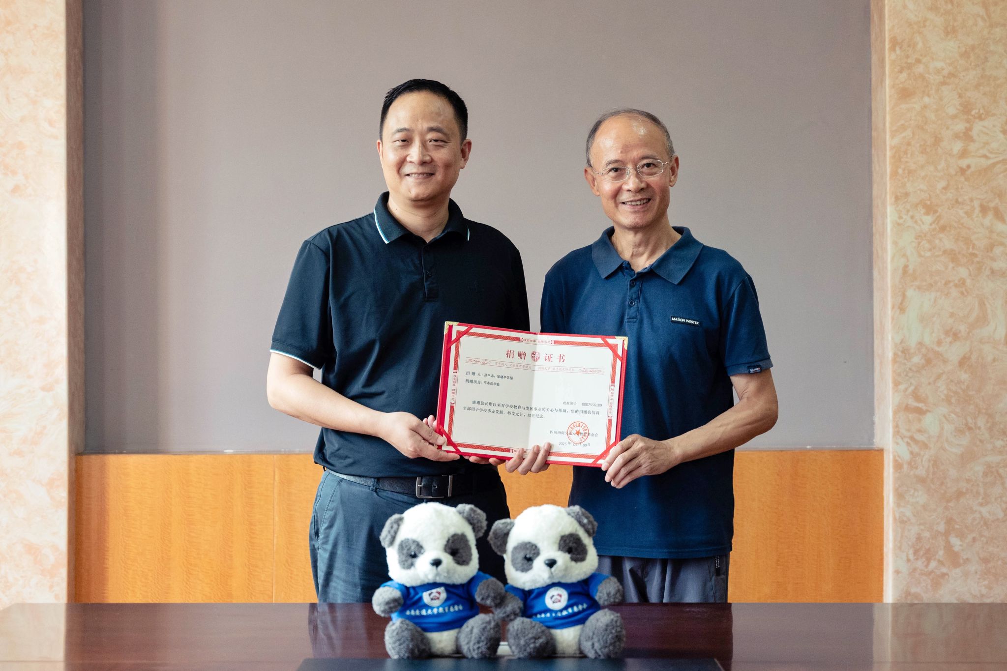 高平平、范平志共同签署捐赠协议,高平平代表学校为范平志颁发捐赠证书。