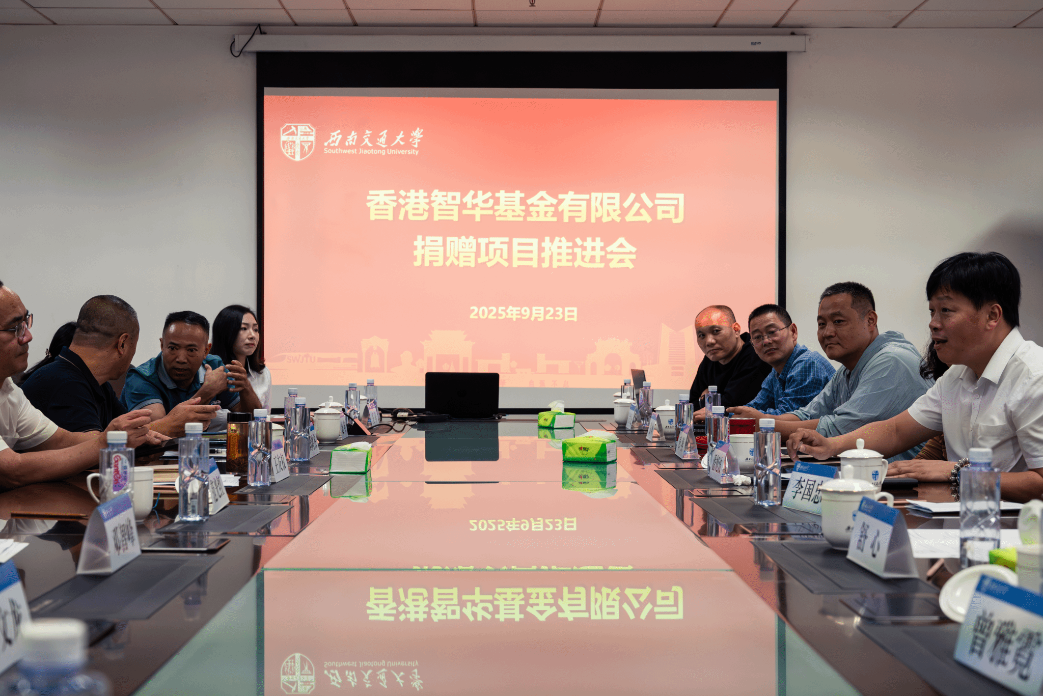 9月23日,香港智华基金有限公司捐赠项目推进会在西南交通大学犀浦校区举行。会议由学校校友工作办公室(教育基金管理办公室)副主任、教育基金会秘书长彭燕主持。