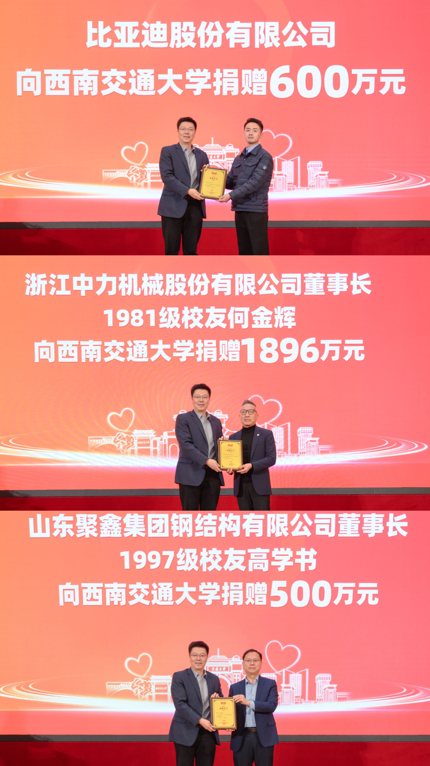 余敏明向长期以来关心支持西南交通大学改革发展的社会各界和广大校友表示感谢。他指出,学校教育基金会紧密围绕一流大学建设目标,主动谋划、积极作为,推动筹资工作取得显著成效。学校将全力以赴把学生培养好,实实在在地为国家多做贡献、做大贡献,以更加卓越的办学成就回报捐赠方的信任与支持。他强调,要按照“以真心换取真情、以行动赢得认同”的筹资工作理念,从战略高度深刻认识筹资工作的丰富内涵,以透明专业的行动用好每一笔捐赠资金,以共赢思维大力推动筹资工作高质量发展,感召更多捐赠方和学校同向同行,共同开创一流大学建设新篇章,为强国建设、民族复兴伟业作出新的更大贡献。